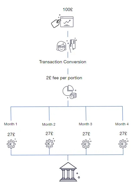 The feature allows the cardholder to convert credit card transactions into instalments. In practice, this means transactions can be divided into smaller equal payments over a certain period which allows the cardholder to finance larger purchases.