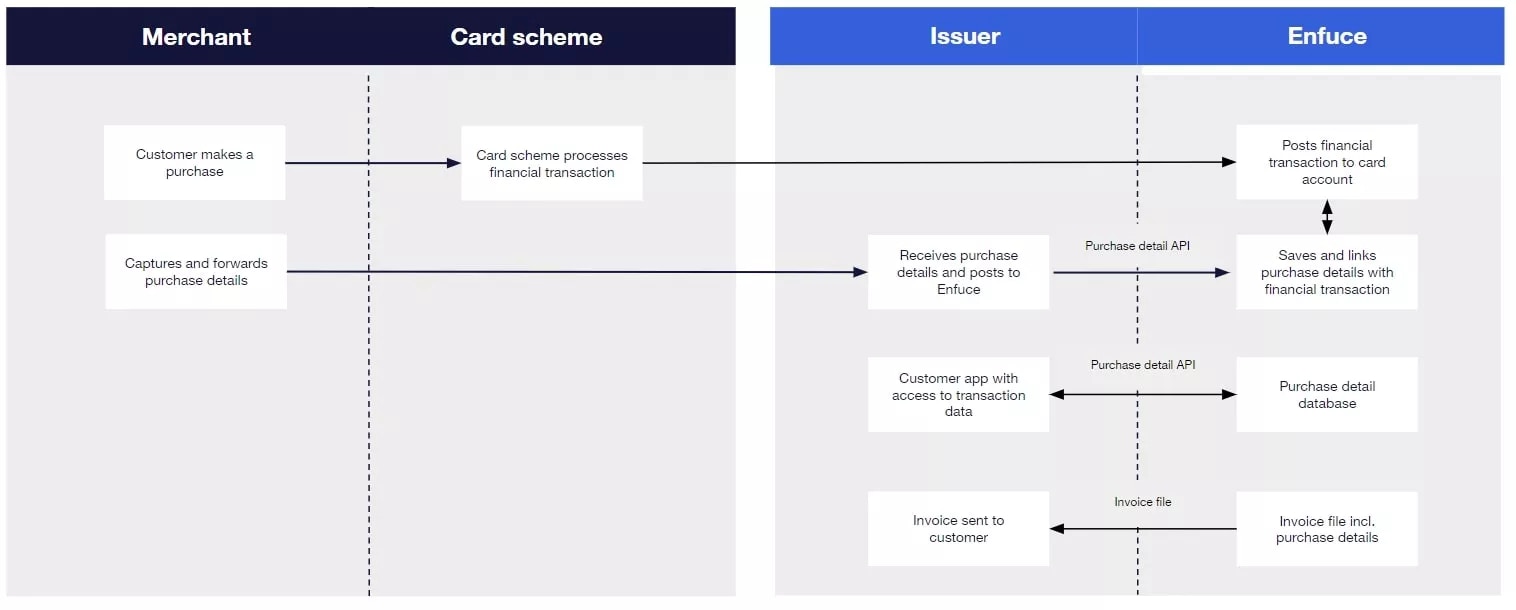 - Enfuce linking the purchase details with financial transactions posted to card accounts.
